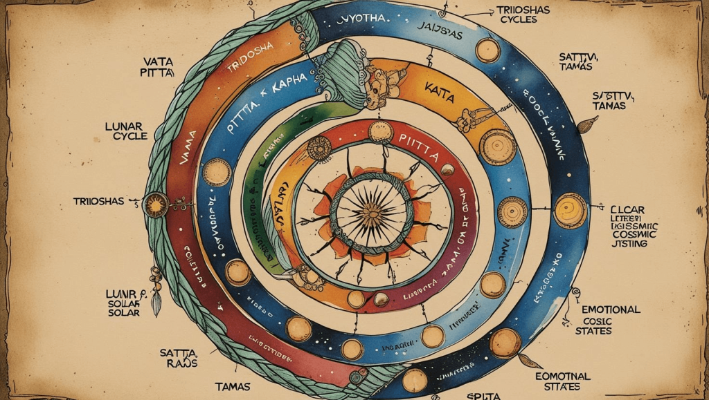 - Feminine systems didn’t — Ayurveda spoke of mental states through bodily humors; Jyotish linked life events to cosmic timing.